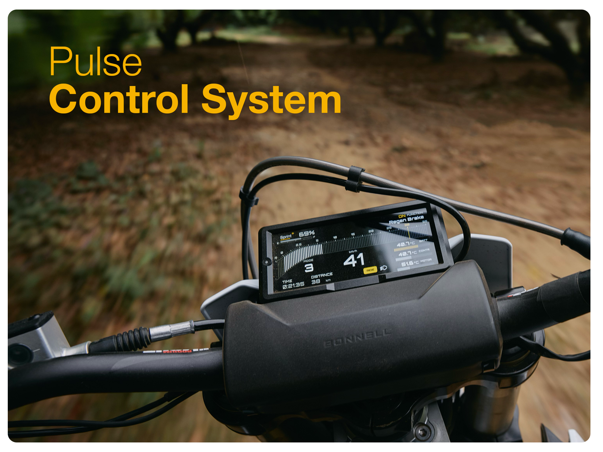 Power, data and control at your fingertips With multiple display views and real-time system data,you're always in sync with your e-Moto performance.